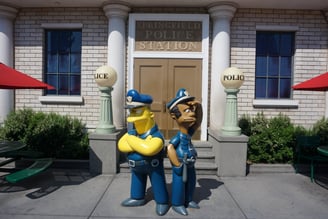 Nous avons également visité Springfield, la ville des Simpsons. Là-bas, nous avons rencontré Homer, Marge, Bart, Lisa et Maggie, et avons dégusté un donut géant chez Lard Lad Donuts. 🏠 Les fans de la série auraient adoré les détails et l'humour présents partout, des enseignes de magasins aux répliques des personnages.