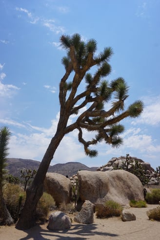 Aujourd’hui, nous avons quitté Los Angeles et pris la route vers le parc national de Joshua Tree. La route était magnifique, bordée de montagnes et de vastes étendues désertiques. 🌵 Nous étions excités à l’idée de découvrir ce parc emblématique, connu pour ses arbres de Josué uniques et ses formations rocheuses spectaculaires.