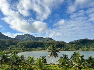 Nous avons également fait la randonnée jusqu'au Belvédère de la Baie de Hapuu, où nous avons pu admirer des panoramas époustouflants sur les lagons turquoise et les montagnes verdoyantes. Ces randonnées nous ont permis de découvrir la diversité des paysages de Huahine, des forêts luxuriantes aux falaises escarpées. 🌳